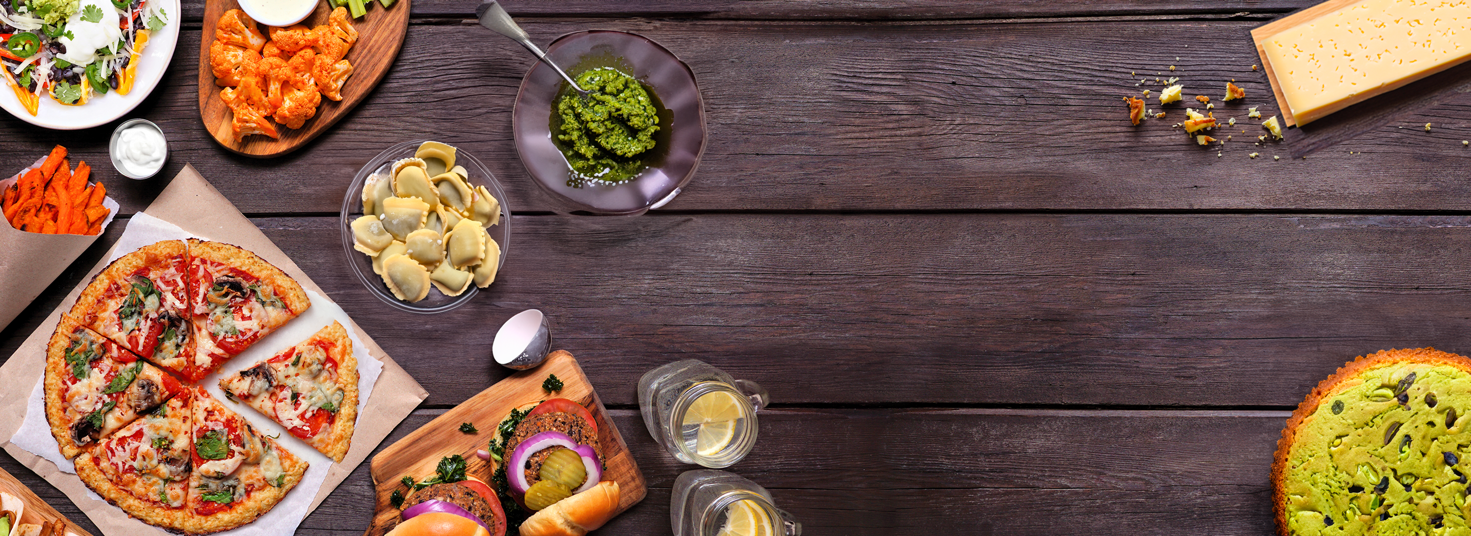 מגוון תחליפי בשר וגבינות, פיצות, שוקולדים, קינוחים ועוד.